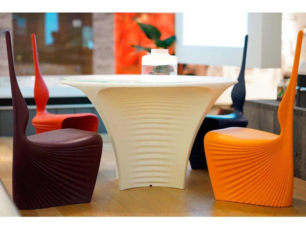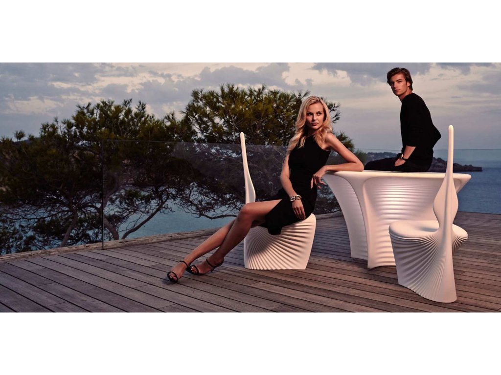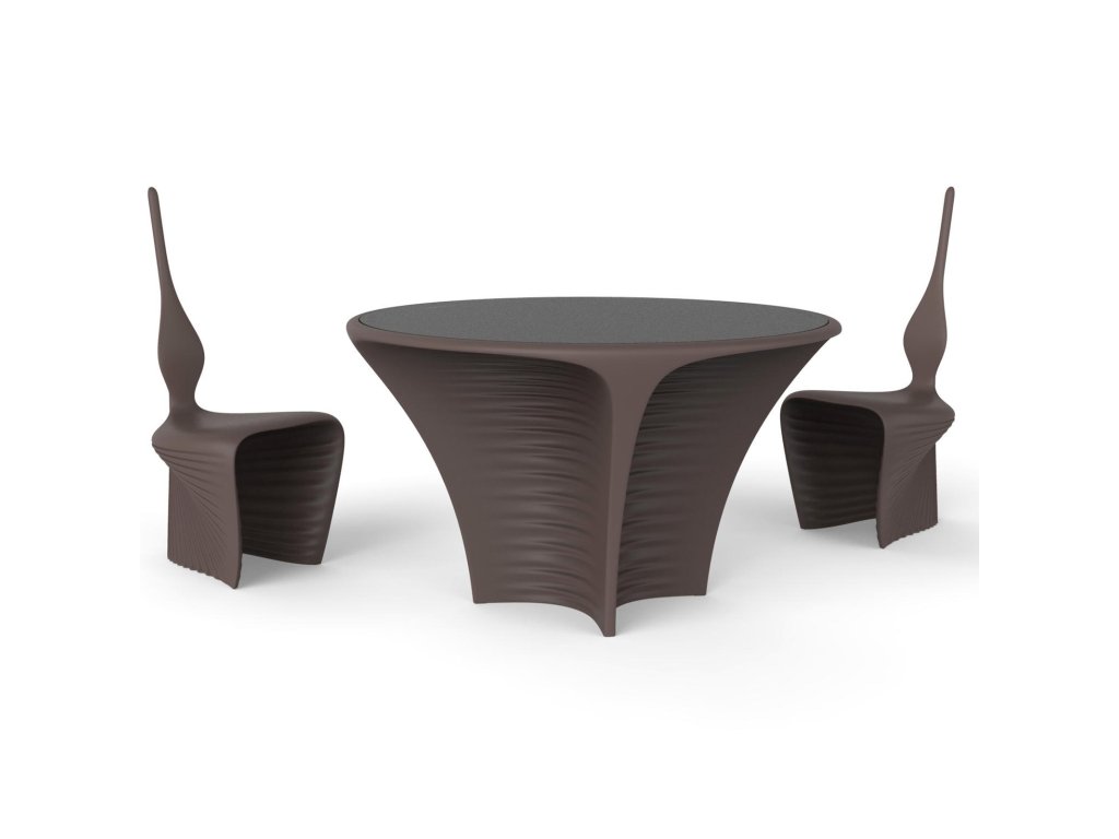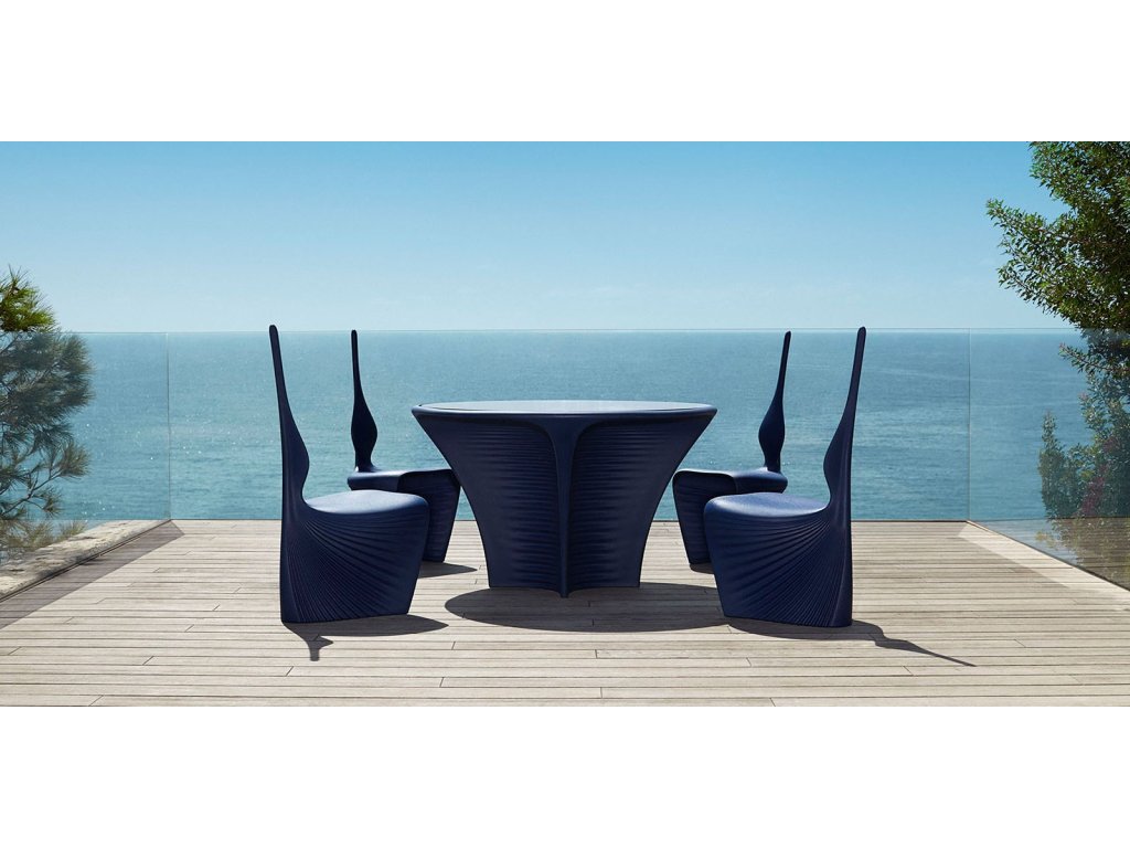 Kolekce BIOPHILIA zkoumá novou cestu designu, která vytváří dialog mezi časem, tvarem a prostorem. Kombinuje přirozený design modelu Sagrada Famila od Antonia Gaudího, odborné znalosti společnosti VONDOM v oblasti pokročilé technologie rotačního tváření a probíhající linii výzkumu digitálního přenosu do současného designu. Stůl Biophilia si užjete jak v interiéru tak exteriéru. Vhodný je pro veřejné prostory ale i soukromé při vytvoření jídelního či záhradního sezení. pr. 120 cm výška stolu 72 cm, 90 kg