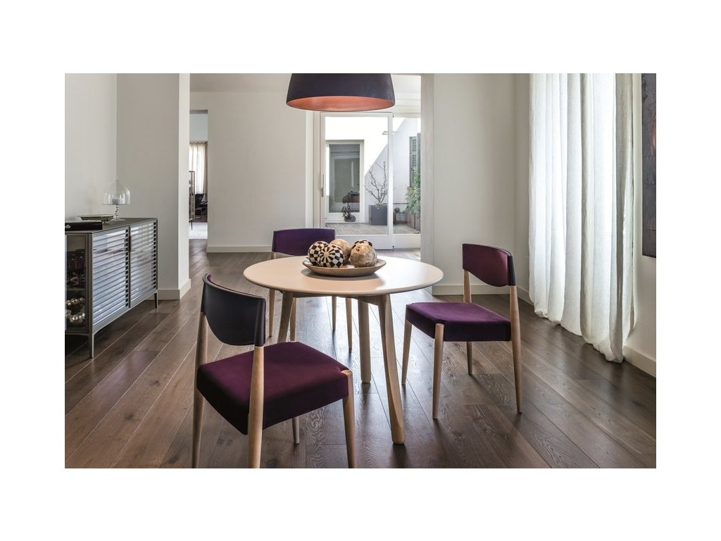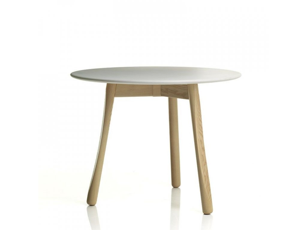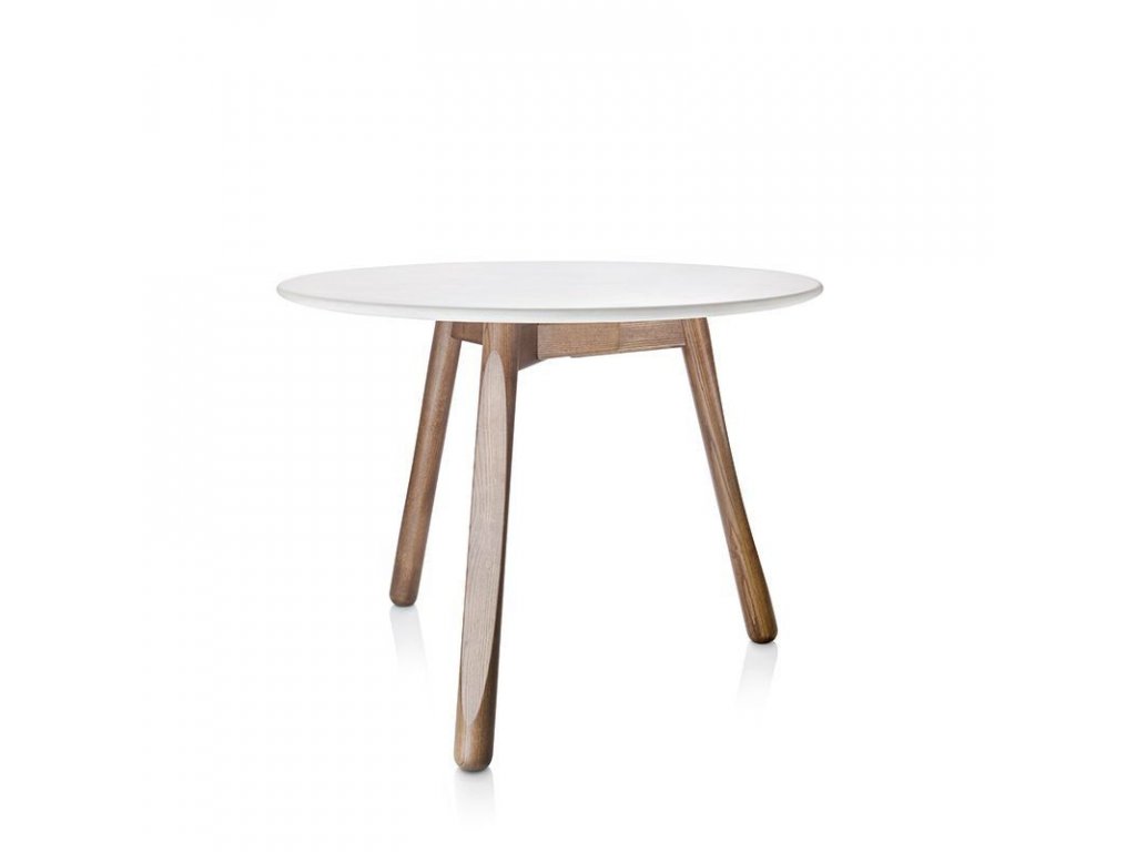 Stůl Marnie se strukturou z masivního jasanového dřeva, mořený nebo lakovaný. Nohy se speciálním zpracováním řezu dřeva. K dispozici s kulatým, čtvercovým nebo obdélníkovým vrcholem. MDF bílá deska