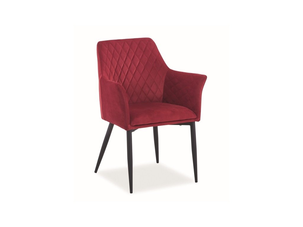Moderní křesílko Sergio čalouněné v příjemné sametové velvet látce tmavě červeného provedení. Podnož ocelová černý lak. 43x45x89 cm / výška sedu 49 cm