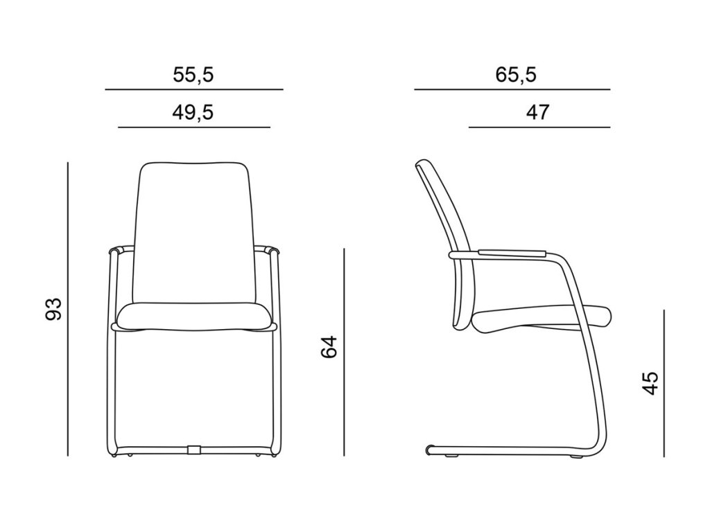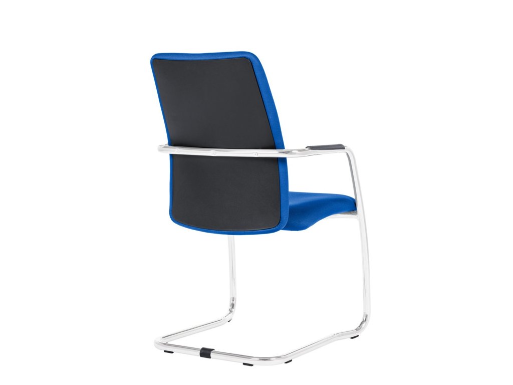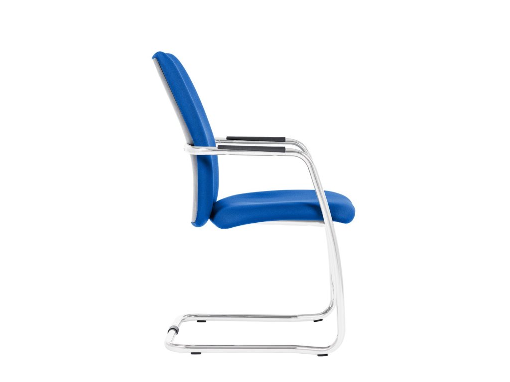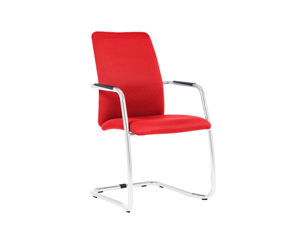 Jednací čalouněná židle včetně područek s měkkou dotykovou plochou, čalounění z kvalitní pěny, ocelový chromovaný rám ližinového typu, středně vysoký opěrák, nosnost 140 kg.