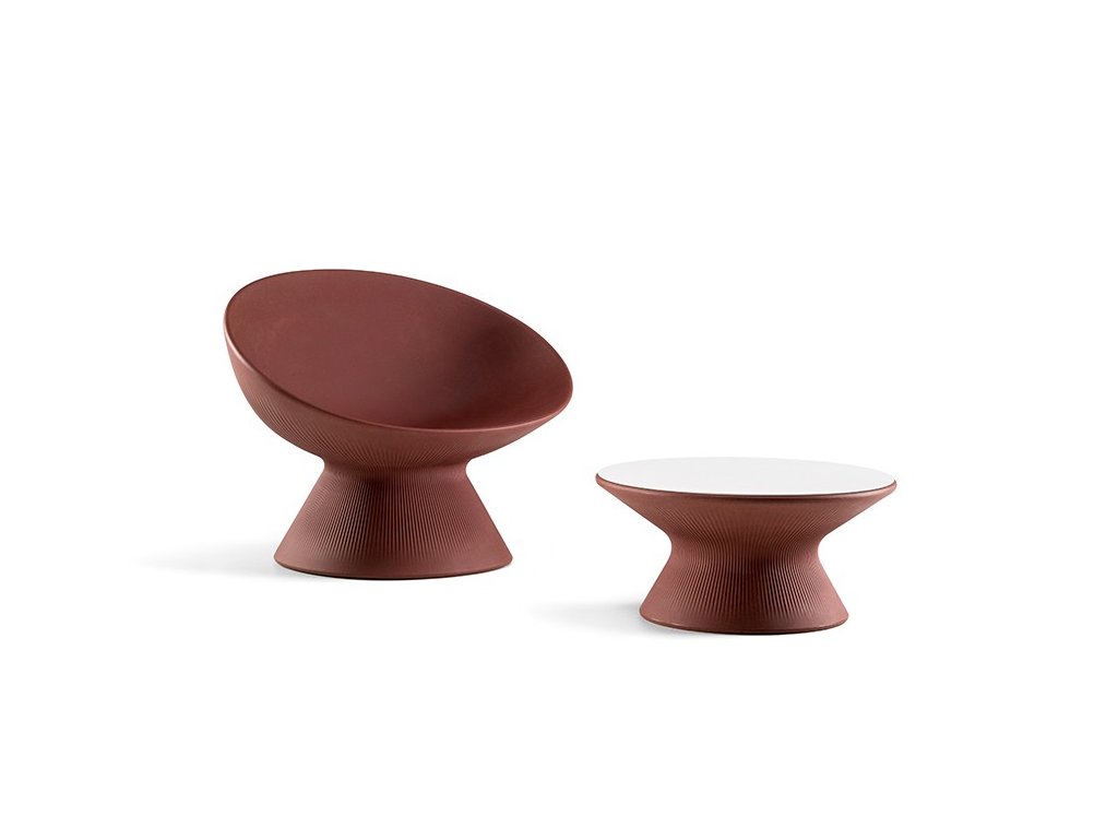 Křeslo Fade je vyrobeno z pevného polyethylénu zajímavých přírodních barev.