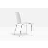 Moderní židle Kuadra s pláštěm v technopolymeru z bílé nebo slonovinové kosti. Flexibilní, pevný materiál odolný proti poškrábání. Trubka z chromované oceli 16 mm. Stohovatelné.