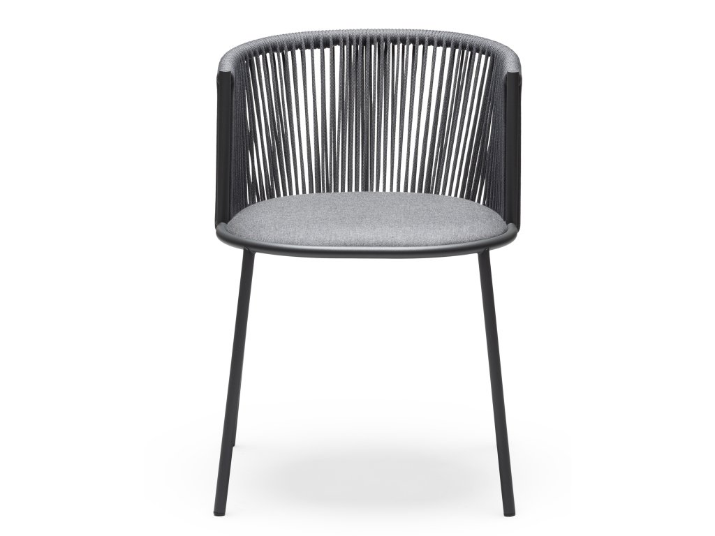 Židli Millie tvoří ocelová konstrukce v provedení antracit nebo béžová, proplétaní mořskými lanami v provedení šedá, antracit, modrá, hnědá.