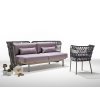 Zahradní ale i interiérové křeslo Jujube tvoří ocelový rám s povrchovou úpravou pro venkovní použití, s čalouněným polštářem a opěrkou protkanou námořním lanem. Tkanina pro venkovní použití: kategorie C. výběr z mnoha barev.